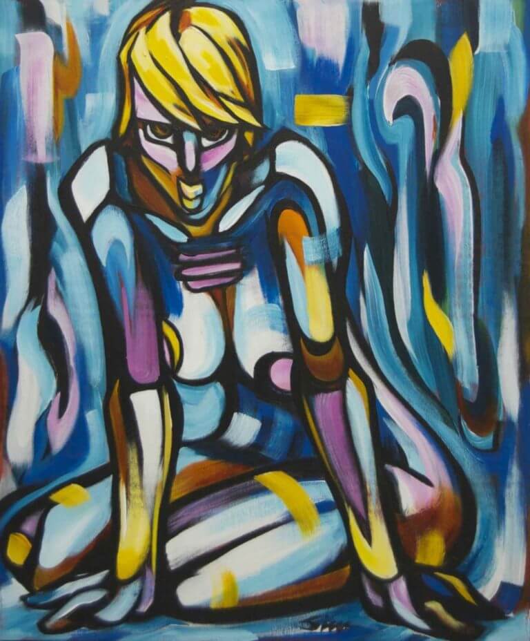 Une autre des 3 toiles qui a déclenché la série des Nus. Une autre toile dont le titre m’est venu après. Plus je le regardait, plus le titre de la chanson d’AC/DC, Shook me all night long, devenait une évidence pour cette toile. C’est peut-être provocateur comme toile et titre, mais c’est aussi pour représenter l’effet qu’une autre personne peut avoir sur soi ainsi reconnaître ce côté en nous qui nous rend excité et vulnérable à la fois.